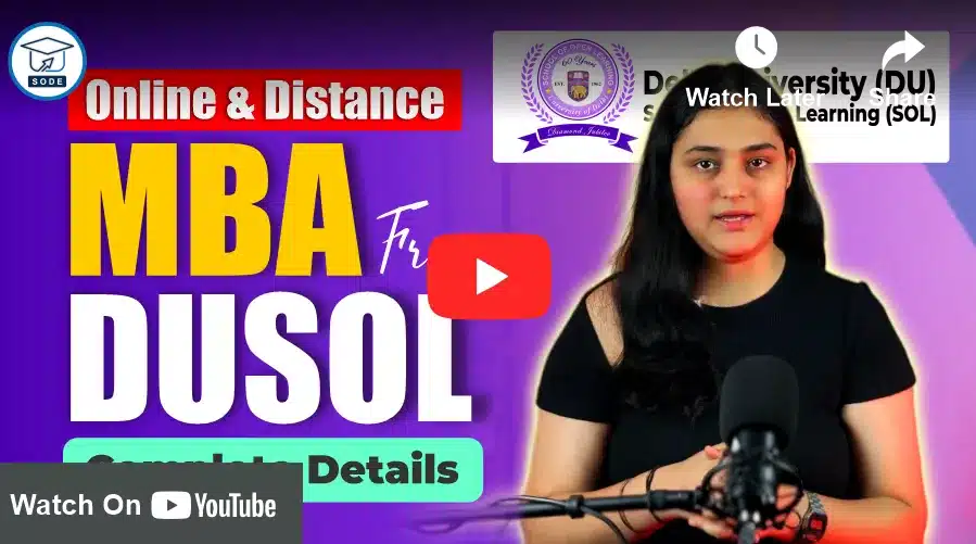 DU SOL Distance MBA is UGC-approved and follows a semester system. The course duration is two years, but students can take up to four years to complete it, allowing them to study at their own pace. Study materials are provided online and offline, and there’s academic support through contact classes and webinars. With a strong focus on skill development and affordability, the DU SOL Distance MBA course is a great choice for learners across India who want to earn a recognized management degree without leaving their current job or city.